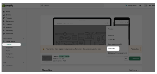 Go to your Shopify store’s admin panel first and go to the “Themes” section. Click on the “Edit
