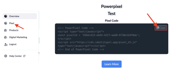 Paste PowerPixel code inside the < head /> section of your website OR inside Google Tag Manager inside ALL pages. For detailed instructions click âLearn Moreâ under the PowerPixel text box.